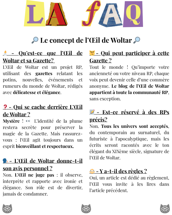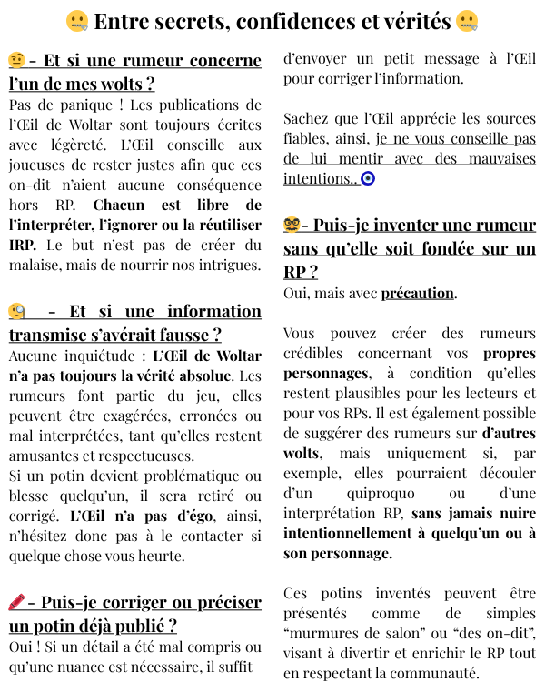 À la demande de certains(es) joueurs(ses), il vous est désormais possible de confier vos réponses au formulaire "consentement" à l’Œil par message privé, que ce soit sur Discord ou directement sur Woltar. Soyez assuré(e) qu’il vous répondra... toujours 👁️